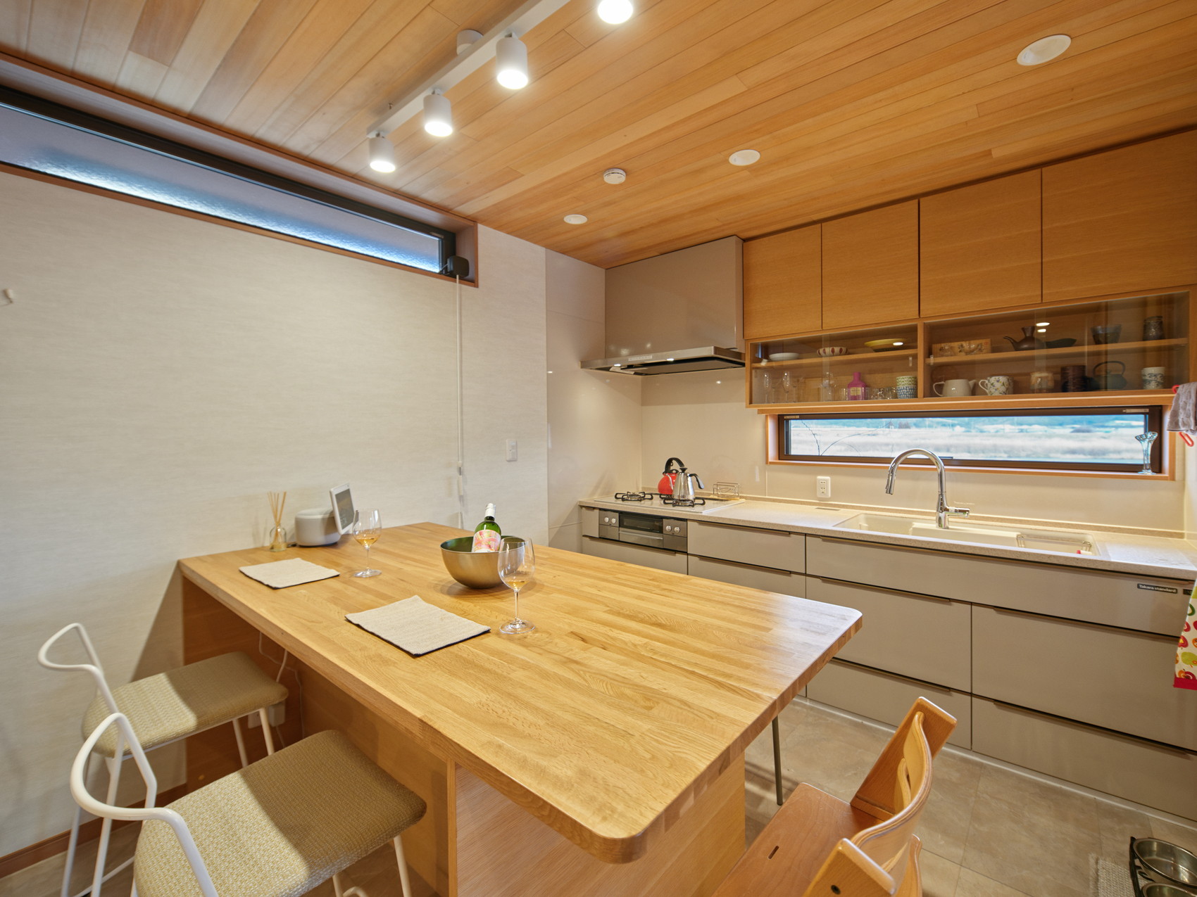 構造設計:MAY設計事務所 杉山逸郎|照明デザイン監修:東京デザインパーティー 長根 寛|施工:株式会社オオバ工務店|木造2階建:148.29㎡