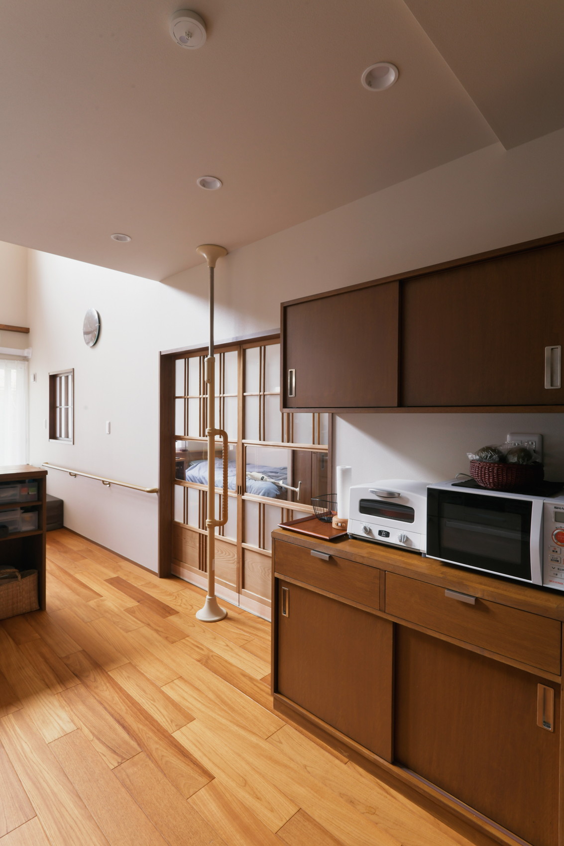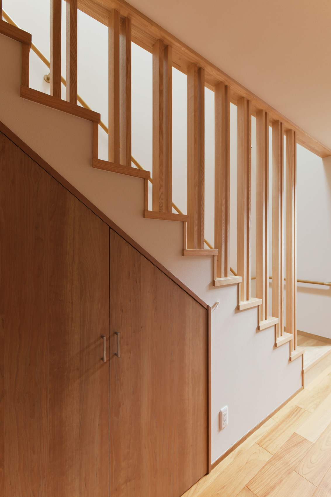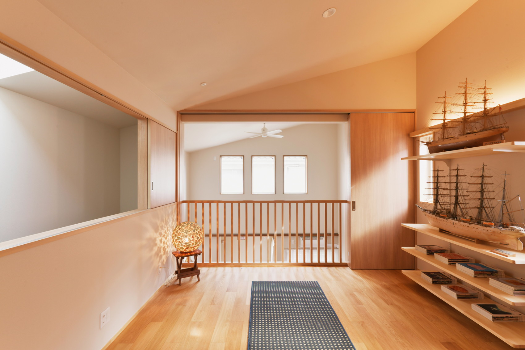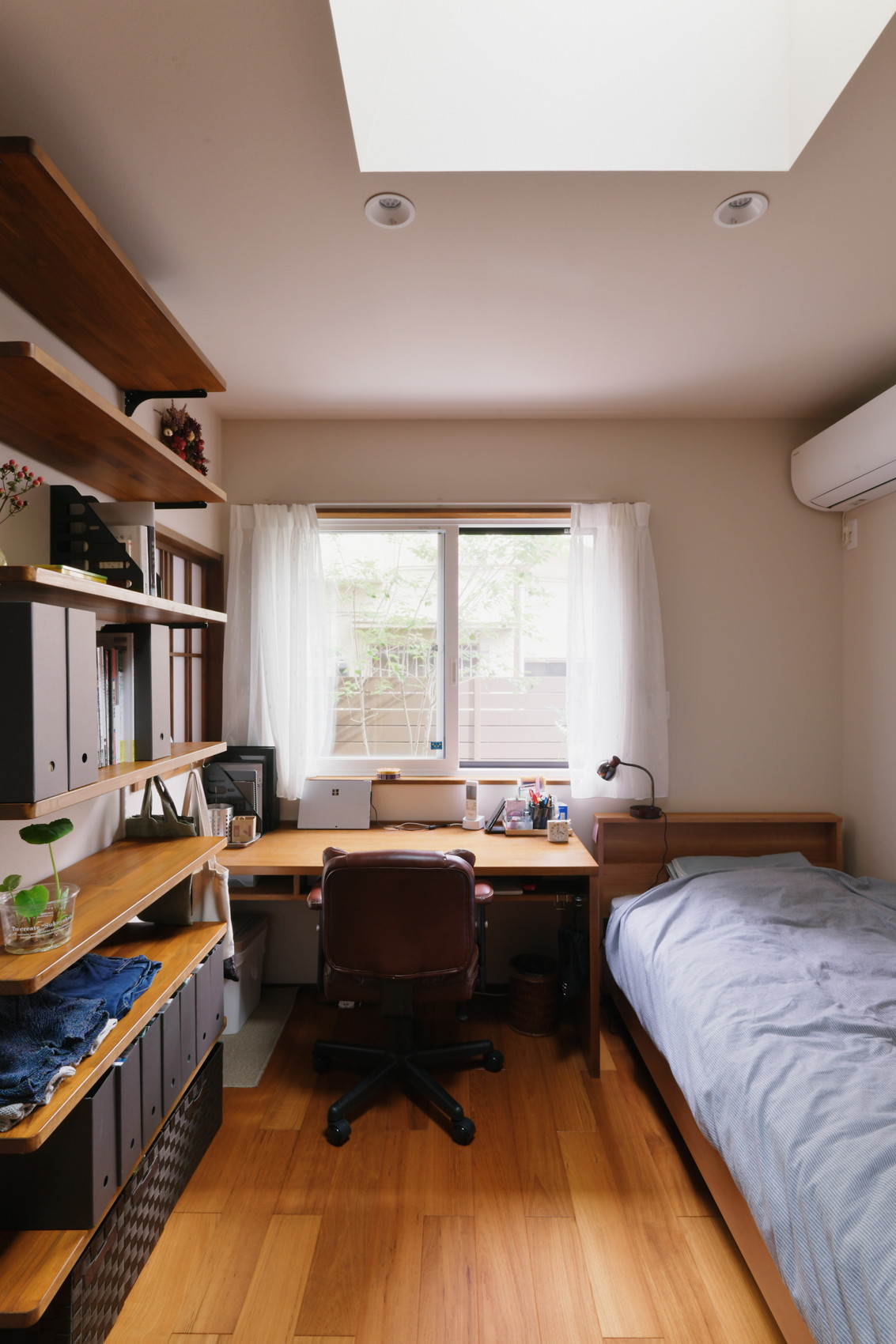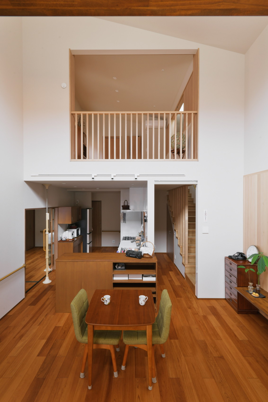 Comment この家の魅力は、立地を活かした開放感と心地よさにあります。三方を建物に囲まれ、大きな開口部が取りにくいという条件を逆手にとり、リビングダイニングには吹き抜けを設け、ハイサイドライトから明るい自然光がたっぷりと差し込みます。寝室や階段室にもトップライトを配置し、やさしい光に包まれる空間を実現しました。