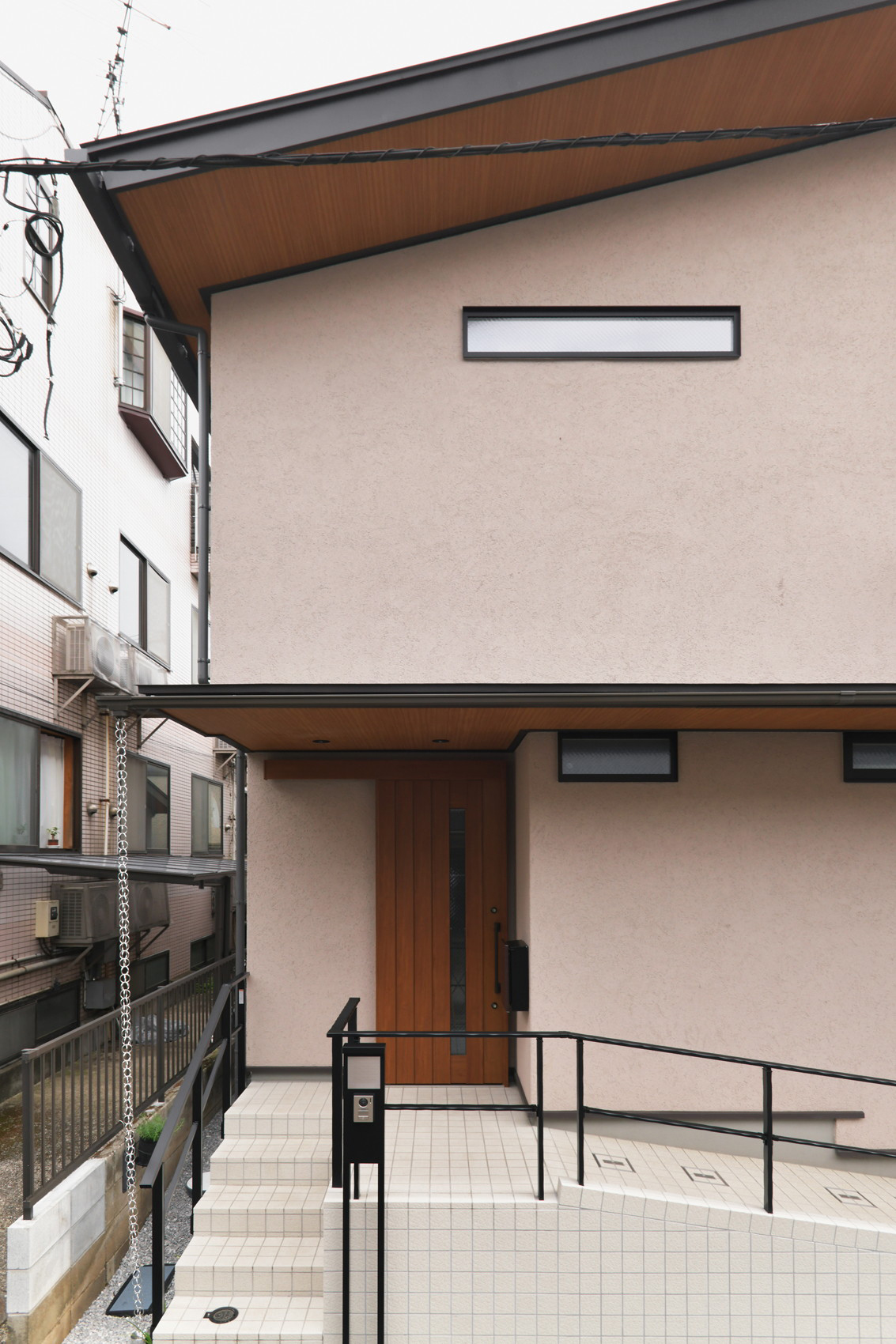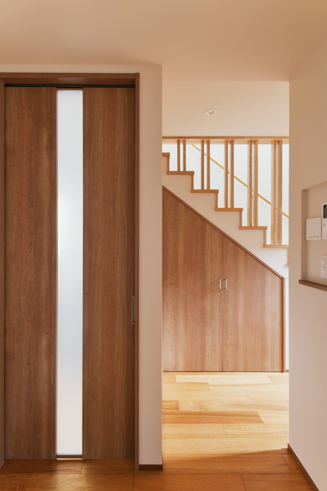 北側が接道で道幅も狭いため、外部からの視線を遮るように開口部は最小限に抑え、プライバシーにも配慮しています。